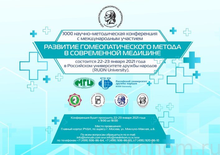 Дорогие друзья! Приглашаем вас на XXXI научно-методическую конференцию с международным участием «Развитие гомеопатического метода в современной медицине», которая традиционно проводится в Москве с 1991 года.